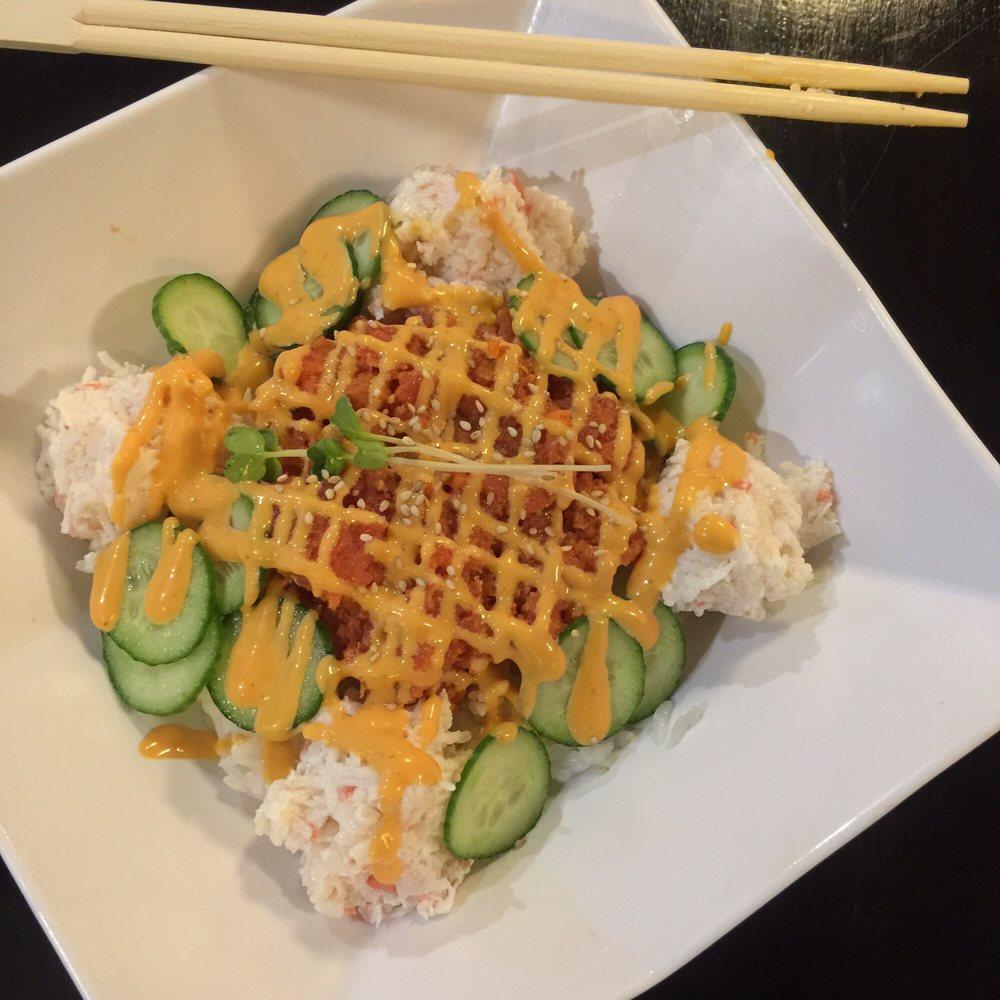 good, but not great sushi. very conveniently located for me so I come here often and it's consistently satisfying, with fast and friendly service. favorites are the veggie tempura hand roll (pictured, only $4.50) and salmon sushi (always like butter, I believe $4.25). most of their fancy rolls are just California rolls with fresh fish on top, for $10+ so I usually stick to a few cheaper options instead here.